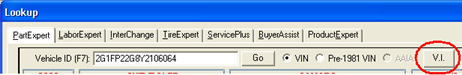 LaserCat 3 provides two types of VIN information. If you performed a lookup using a method other than using an actual VIN, you can press <F4> or press the V.I. Button on the Lookup window to see VIN information.