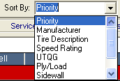 TireExpert only. After you perform a tire lookup, lets you sort your results by different parameters, such as speed rating or manufacturer. Same as the Sort By drop-down list.