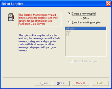 You use the Supplier Maintenance Wizard to create and edit suppliers for the ePartExpert and PartExpert Data Servers.