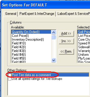 Enabling this check box makes the tire data display in the shopping cart as a comment.