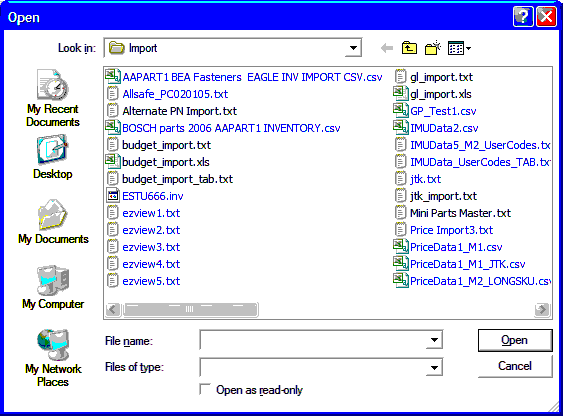 In the Open dialog that displays, Select the file you want to import, then click Open.