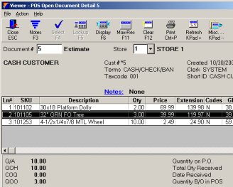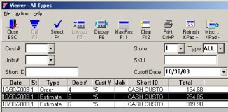 Recall a saved transaction (order, bid, estimate, etc.) to make changes to the transaction or invoice it. You can recall a saved transaction using the document number or by using the All Types Viewer. |