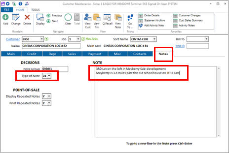 Click here for the procedure for adding or modifying delivery instructions at POS.