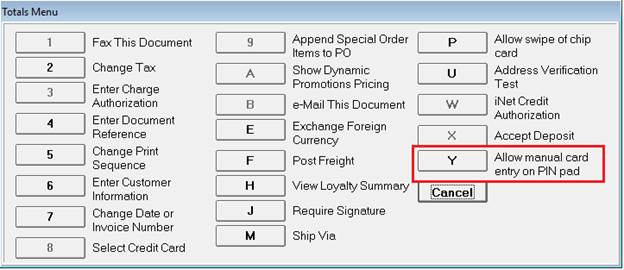 The Totals Menu dialog box displays when you press menu on the Totals Screen.