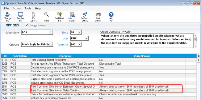 In POS, when you enter the customer's SKUs for an item, the SKUs number from Inventory Maintenance is posted to the POS posting grid. In other words, Customer SKUs are simply cross-references to actual SKUs. However, you can choose to have Customer SKUs, rather than the actual SKUs, print on customers' invoices.