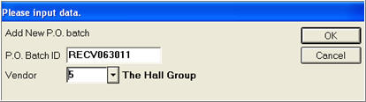 Click Add to create a PO batch. In the dialog that displays, enter a PO Batch ID that is easy to remember (up to 10 alphanumeric characters), select the Vendor, and click OK.