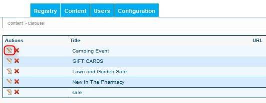 delete a carousel item, locate the item you wish to delete and click