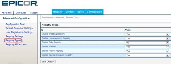 Customer Registries—Allows user to manage customer registries