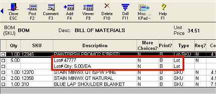 If a component is a lot item, as indicated in the Type column, select the lot by clicking Misc, then clicking Post Lot Quantity.
