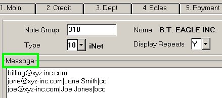 Enter each line in the following format, with information separated by a | (called a "bar" or "pipe" symbol): email|name|copy The following are formatted examples. Just for the examples, the pipe symbol is displayed in red to make it easier to see. billing100@xyz.com|Billing Dept jane100@xyz.com|Jane Smith|cc joe100@xyz.com|Joe Jones|bcc