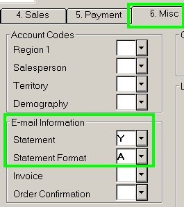 Set up the customer account: Misc tab fields Complete the following to review the e-Statement defaults.