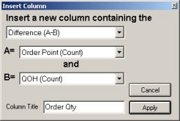 Use the following procedure to add a column to a viewer based on a calculation. The example screen shots in this job aid use the Inventory viewer, adding a column to calculate the difference between Order Point and Quantity on Hand.