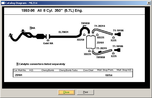 If you perform a lookup on mufflers, you can view diagrams of various exhaust configurations for the selected vehicle.