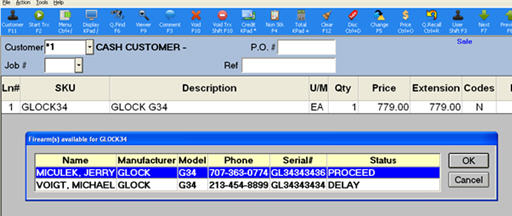 From POS, with your cursor in the Item (SKU) field, select No Sale Menu option M-AIMI Firearm Import. A dialog box of all AIMI transactions eligible for import displays. An eligible transaction is one marked in the AIMI system with a status that matches those you defined in option 1406.