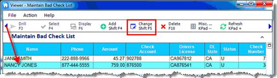 Click to highlight the Bad Check record you want to modify, then click Change.