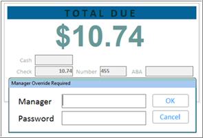 To proceed with the check payment, press Enter to Continue. If you have security bit 776 which allows you to bypass the bad check warning, you are now finished with the transaction. If you don't have security bit 776, you must obtain a manager's override in order to finish the transaction.
