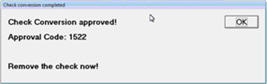This dialog displays regardless of whether the check is approved via ECC or regular Check Guarantee.