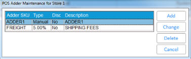 Create an SKU in Inventory Maintenance for each POS Adder. Then use "Maintain POS Adders" in Options Configuration to add POS Adders. You can have up to 999 Adders. The procedure below assumes you have already set up options for the POS Adders feature.
