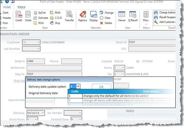 While creating or maintaining a POS order, use this procedure if you need to change the delivery date after you've already posted items to an order.