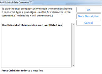 In the next dialog box, type your comment. Press Control-Enter to move to the next line. The comments can be any length. When finished, click OK.