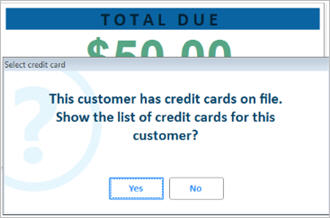 When you total the transaction, press Enter to select Yes in the Select Credit Card dialog box.