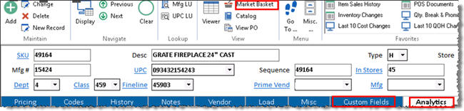 Below is an example of Inventory Maintenance, with Compass Features enabled.