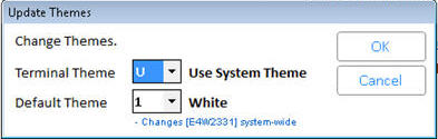 can change this Terminal's Theme, and/or the Default Theme. The Default