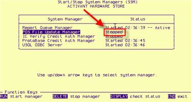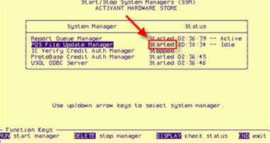 With the POS File Update Manager highlighted, press <Run> (F3). Then wait for the screen to say that the POS File Update Manager has been "Started."
