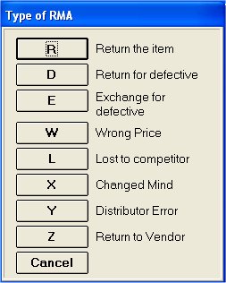 Post the items the customer wants to return. As you enter each item, you will be prompted for a return reason. These return reasons may be used for later analysis.