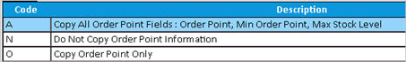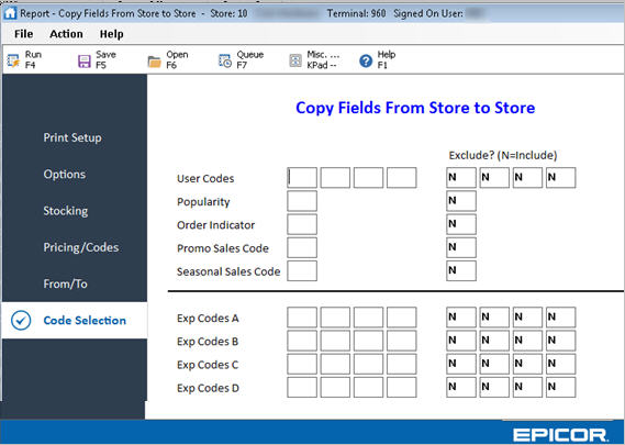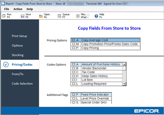 In the Codes Options field, you will see some of the store specific fields found on the Inventory Maintenance window Codes tab. You can select the following fields to copy: