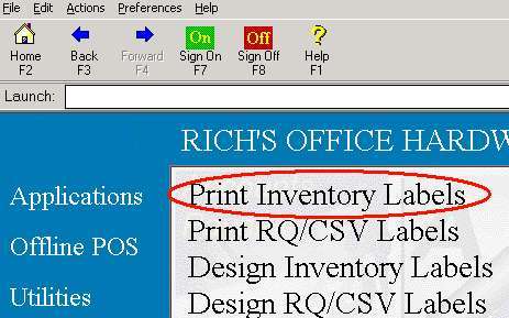 From the Label Design and Printing menu, Click Print Inventory Labels.