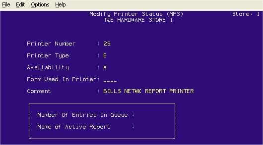 From the Network Access main menu, type MPS and press <ENTER>. The Modify Printer Status screen displays.