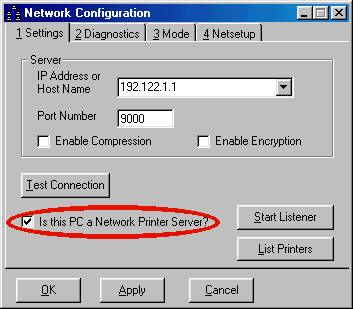 In the Network Configuration dialog box, click the box next to "Is this PC a Network Printer Server?" so that a checkmark displays.