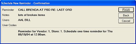 - When a confirmation box displays, Click Finish if the reminder is set up the way you want it. Otherwise, click Back to make corrections.