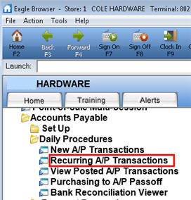 If you have set up recurring A/P transactions, remember that you need to post recurring transactions every month by running the Post Recurring Vouchers To New A/P Trx File. Epicor Software Corporation™ suggests you post recurring transactions on the last day of every month.