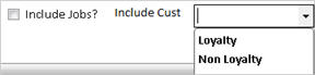 - (Optional) To refine your search for customers, click the Include Jobs box if you want job accounts included, and/or in the Include Cust field, select Loyalty or Non-Loyalty.