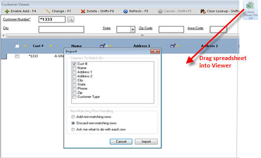 - Once you have created the spreadsheet you want to import, drag and drop it into the Active Customer Viewer.
