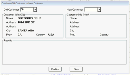 Address: If the new Customer address (Address, City, St, Country, Zip) is blank, the old customer address will be copied to the new customer. If both addresses are the same except for a plus-4 zip, the old customer plus-4 zip will be copied to the new customer if new customer is blank.