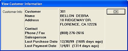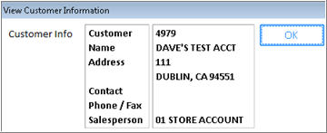 (Optional) To view general information about the customer, click the View Customer Information hyperlink in the middle of the window. The information displays in a dialog box. When finished, click OK to close the dialog.