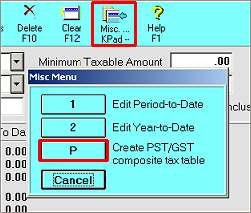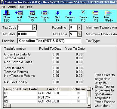 If PST tax is inclusive in your province or state, enter a Y in the Inclusive field. Otherwise, leave that field set to N.