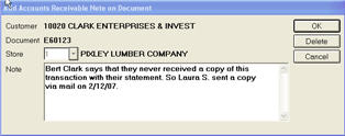 Notice that the Add Note hyperlink has been replaced with a hyperlink showing the date and user who entered the note. This is important because in the future, you'll know at a glance that the transaction has a note attached to it, who wrote it, and when.