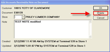To delete a note, simply click the hyperlink showing the date and user (as shown in step 3 above), and click Delete in the dialog that displays.