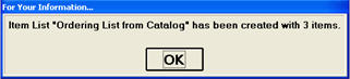 If the system asks if you want to add non-stocked items to the list, answer Yes to proceed with creating the item list, or answer No if you do not want to proceed with creating the item list.