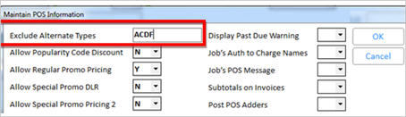 In the dialog box that displays, enter the letters and/or numbers that correspond to the Types of alternate items you want to exclude, and click OK.