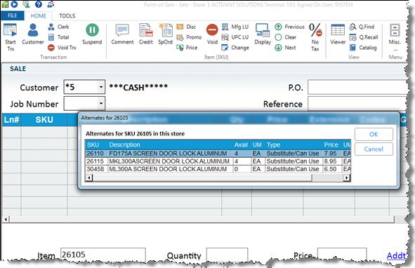 If a list of alternates displays, click to select an alternate item and then click OK, or click Cancel to close the list without selecting an alternate item.