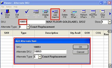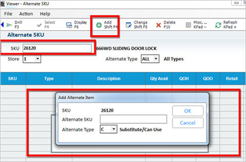 Enter the Alternate SKU and select an Alternate Type. Then click OK.