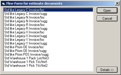 Select the form type for the first Enhanced Form, estimates. Click the Current Value to display an arrow, click the arrow to display the following selection dialog. Click to select one of the form types and then click Open. The dialog closes.