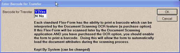 Select the barcode prints column option for estimates. Click the Current Value to display an arrow, and click the arrow to display the following selection dialog. Select Y or N, and then click OK.