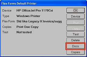 If you want to display a sample of the standard invoice flex forms, simply click Docs from the Enhanced Forms Default Printer dialog.