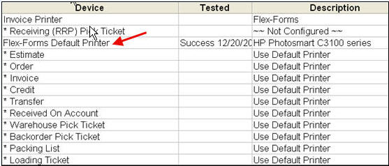 The Invoice Printer configuration dialog again displays, the Device field is now set to Enhanced Forms. Click OK to close the dialog. In the Device Configuration window, the other form types are added to the grid, below Flex Forms Default Printer.
